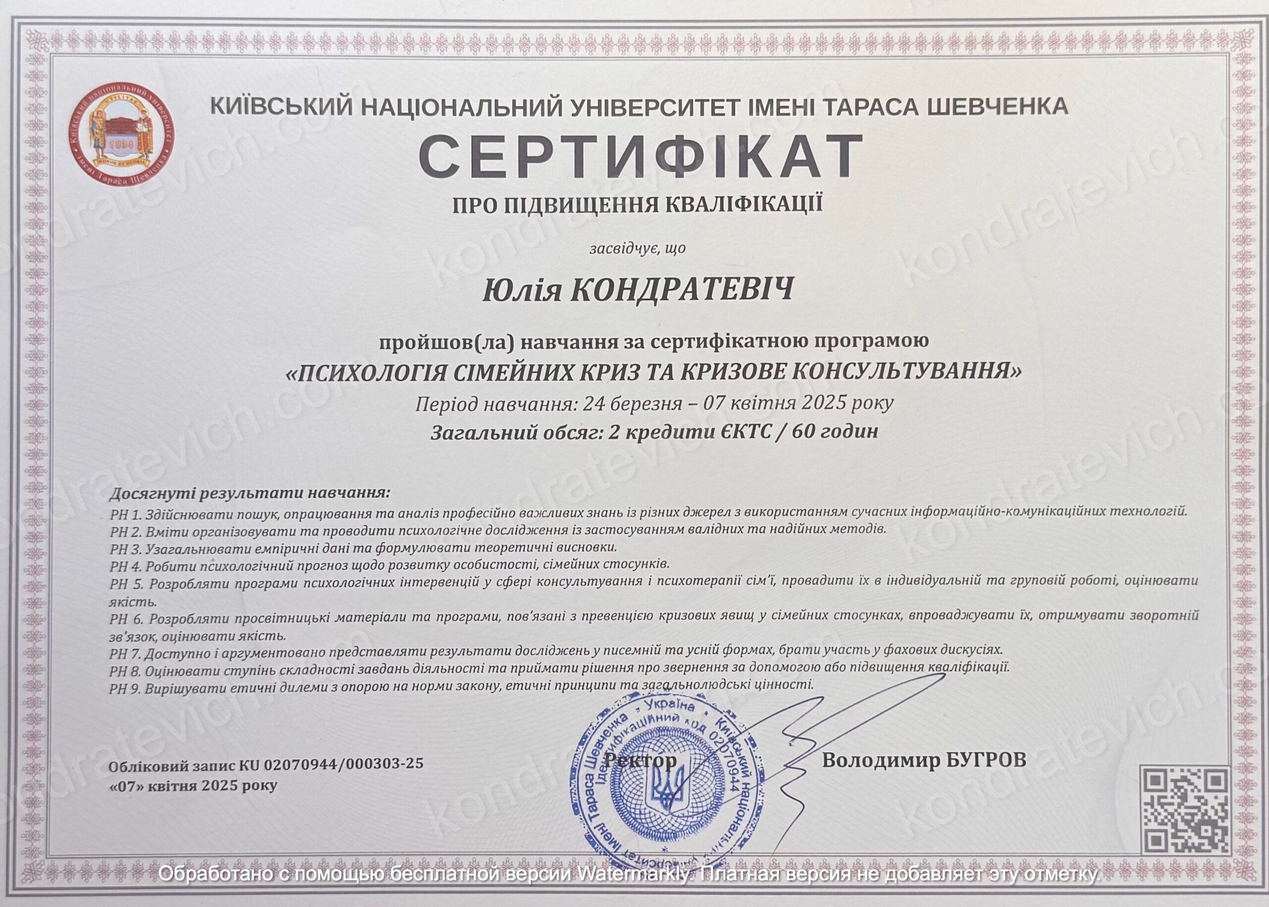 Психологічна допомога при депресії, почутті самотності, у відносинах чоловік-жінка, дитячо-батьківських відносинах, післяпологова депресія, трудоголізм, втрата віри у себе.